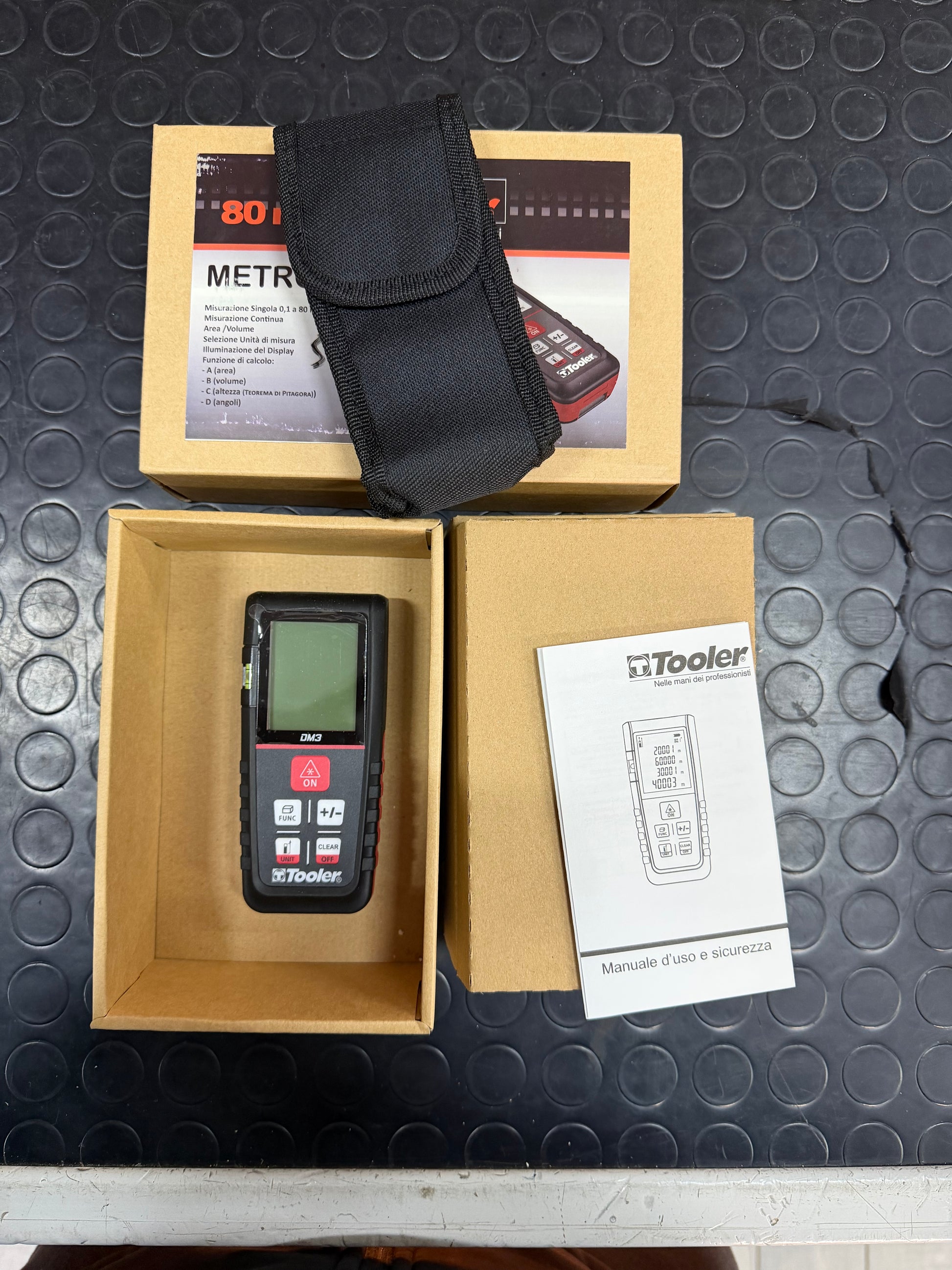 Metro laser Tooler con portata fino a 80 metri, ideale per misurazioni rapide e precise in ambito edilizio, tecnico e fai-da-te professionale.
